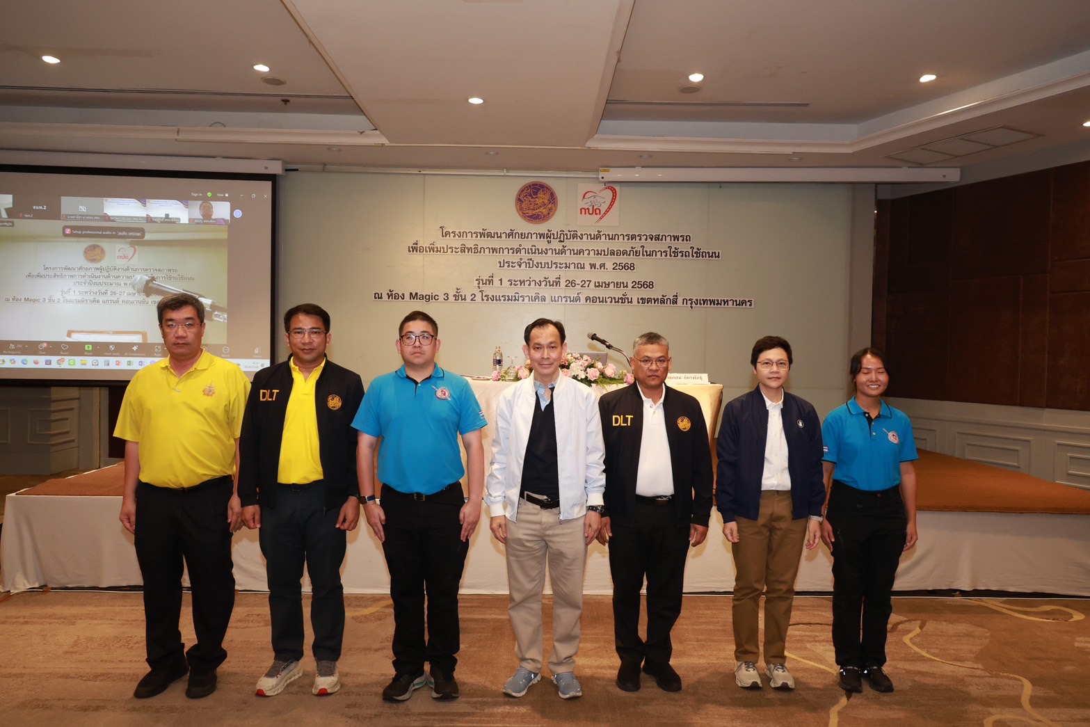 โครงการพัฒนาศักยภาพบุคลากรด้านการตรวจสภาพรถ เพื่อเพิ่มประสิทธิภาพการดำเนินงานด้านความปลอดภัยในการใช้รถใช้ถนน ประจำปีงบประมาณ พ.ศ. 2568 รุ่นที่ 1 ระหว่างวันที่ 25 – 26 เมษายน 2568 ให้แก่ นายช่างตรวจสภาพรถทั้งส่วนกลาง และส่วนภูมิภาค จำนวน 158 คน ณ โรงแรมมิราเคิล แกรนด์ คอนเวนชั่น กรุงเทพมหานคร